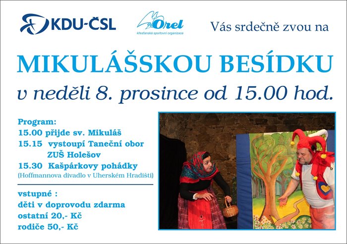 KDU-ČSL Holešov a tělovýchovná jednota Orel Holešov Vás srdečně zvou na tradiční Mikulášskou besídku, která se uskuteční