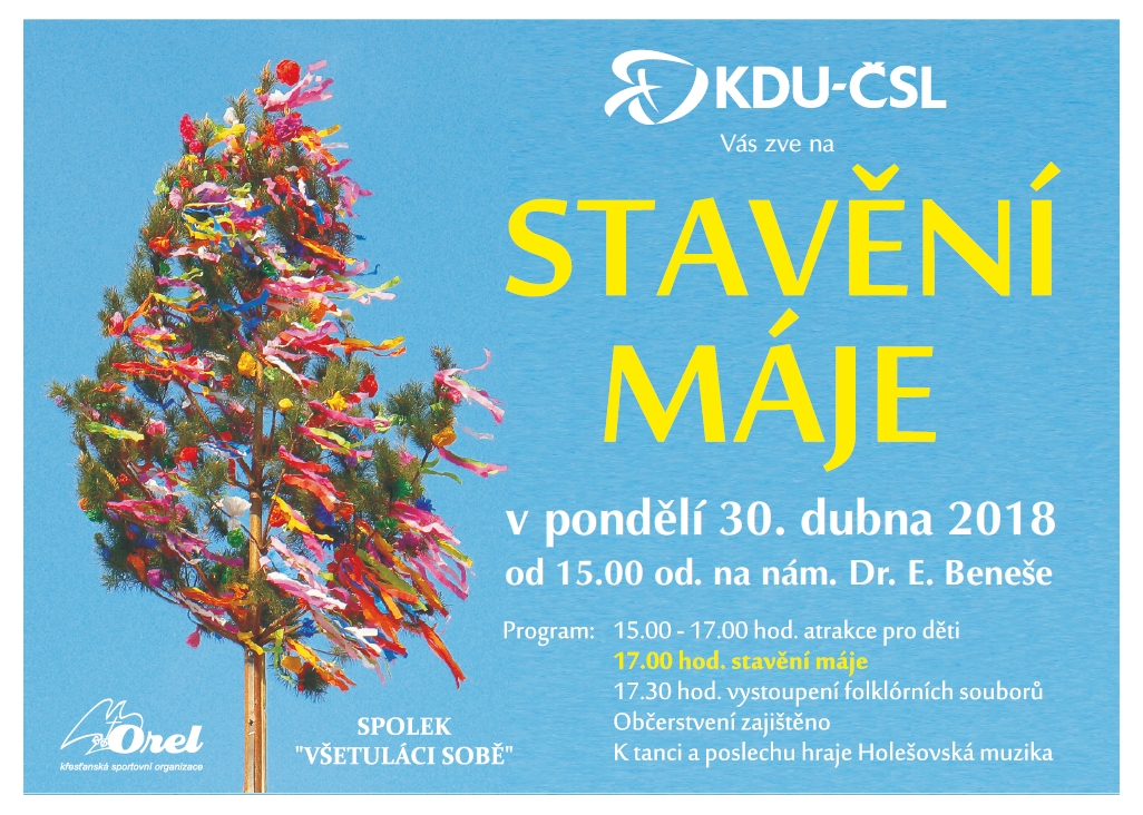 Dovolujeme si Vás pozvat na Stavění máje v pondělí 30. dubna 2018.